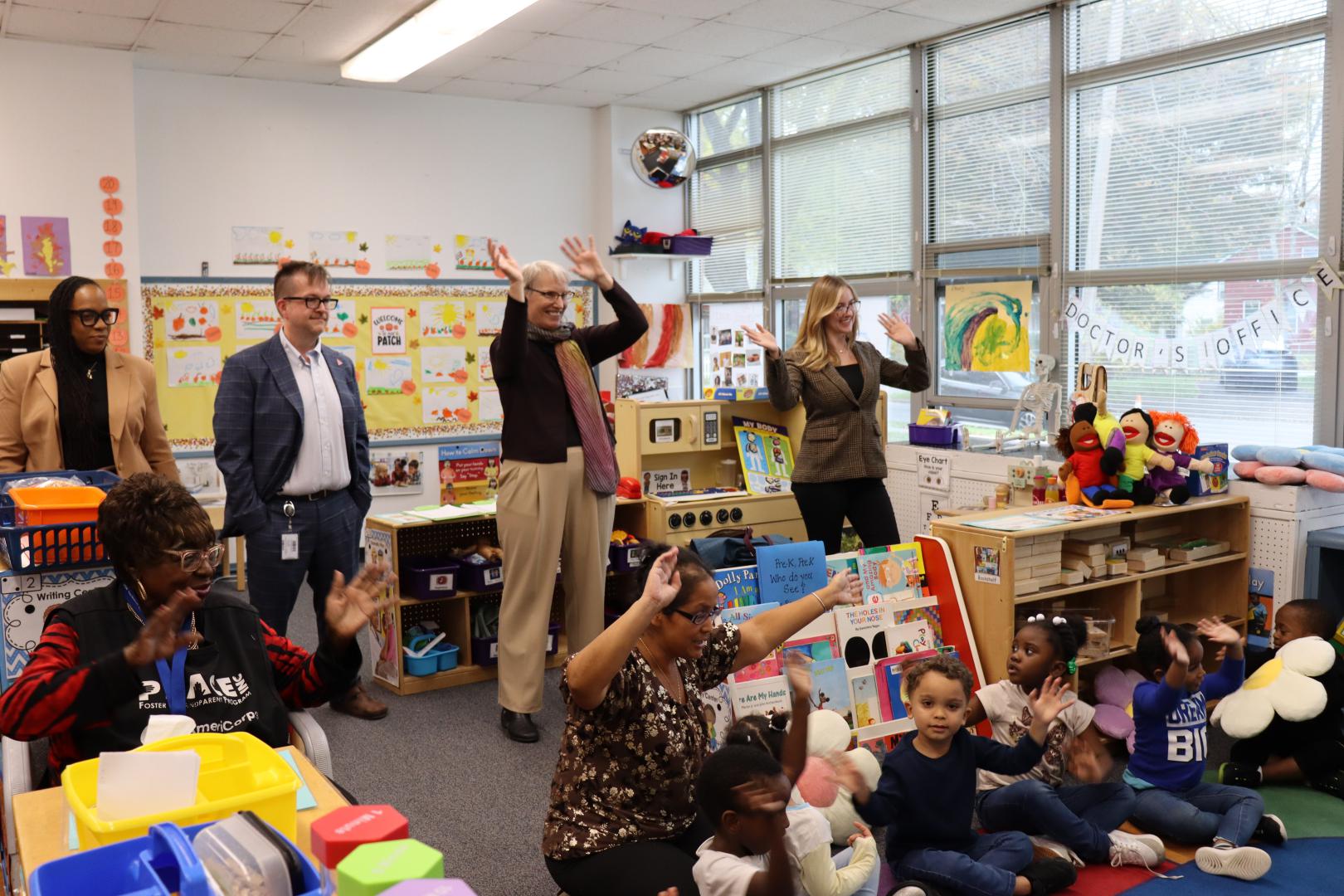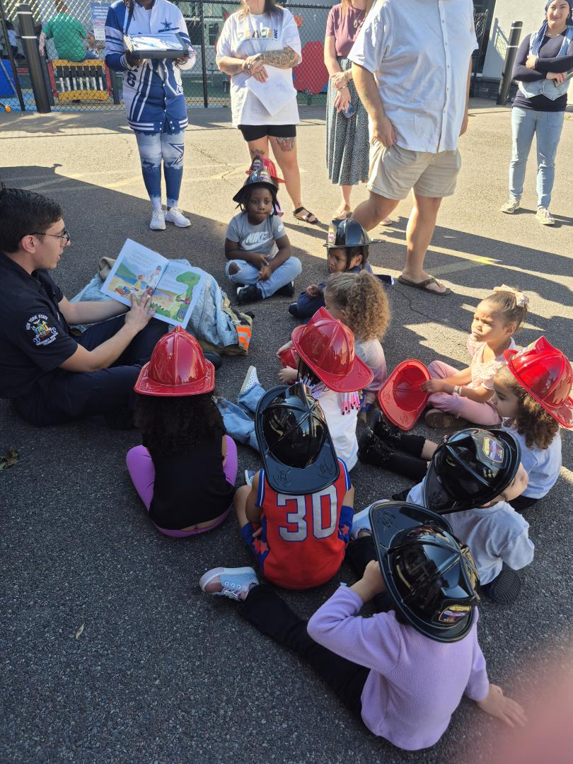 In awarness of Fire Prevention Month, Genesee Head Start welcomed local firefighters for a special visit with students and staff. The firefighters engaged the children in a fun and educational experience, reading a story, discussing important fire safety tips, and giving the students the exciting opportunity to explore one of their fire trucks up close.