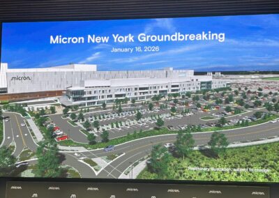 PEACE, Inc. Executive Director Carolyn Brown and VP of Operations and Strategy Todd Goehle were pleased to attend the groundbreaking celebration for Micron’s new microchip factory in Clay. The event marked an exciting milestone for Central New York, highlighting the region’s growing opportunities in technology and manufacturing.