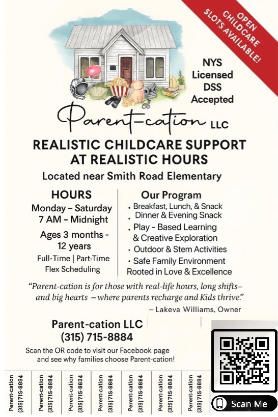 We are proud to highlight Lakeva Williams, owner of Parent‑cation LLC, a family‑based childcare program in North Syracuse that is making a meaningful impact for families in the community. Lakeva first became licensed through the PEACE, Inc. Early Childhood Career Pathways Program (ECCPP) in June 2023 and recently expanded to a Group Family Day Care in October 2025, allowing her to serve more children and hire a Teaching Assistant to further enhance support for families. Parent‑cation LLC is licensed to care for up to 12 children ages 6 weeks to 12 years, offering a nurturing place for early learning and play‑based development.