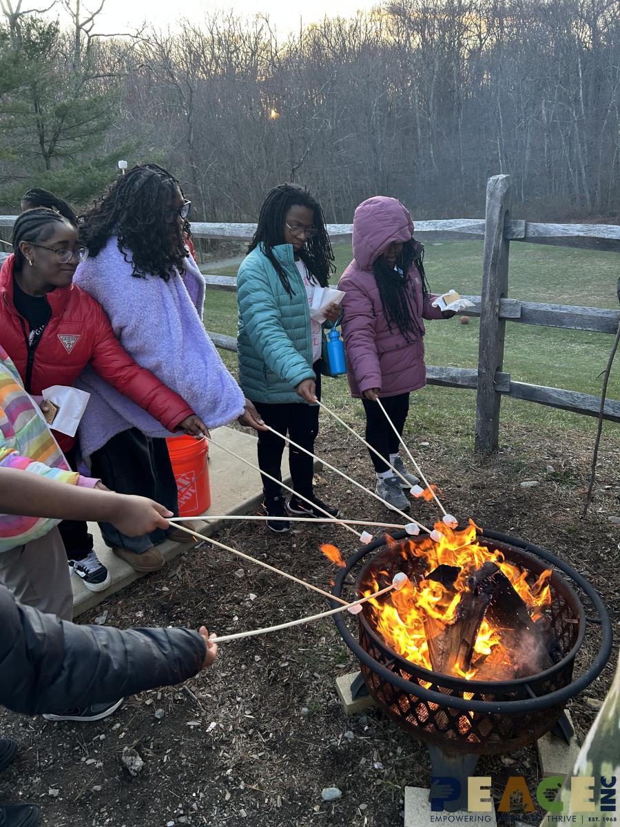 Spring was just arriving as PEACE Eastside Family Resource Center’s Girls Circle visited Taconic and Bear Mountain State Parks. They made the most of their 3 days in the woods, from s’mores to a ropes course, tie-dyeing t-shirts to learning how to start a fire without matches. The weather played nice and the trip was a fantastic opportunity to bond with one another and explore nature.