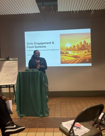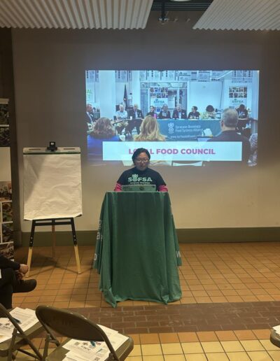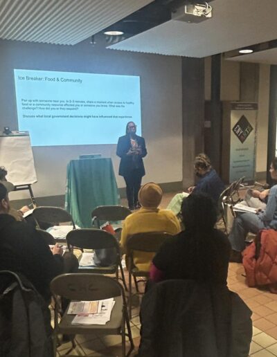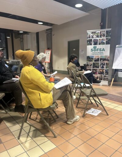 Community leaders Tatiana Parker and Tylah Worrell provided a clear overview of governmental structures and processes, helping participants understand how local policies are developed and implemented. Following the presentation, SOFSA representatives shared practical strategies for residents to use this knowledge to advance food justice in their neighborhoods.
